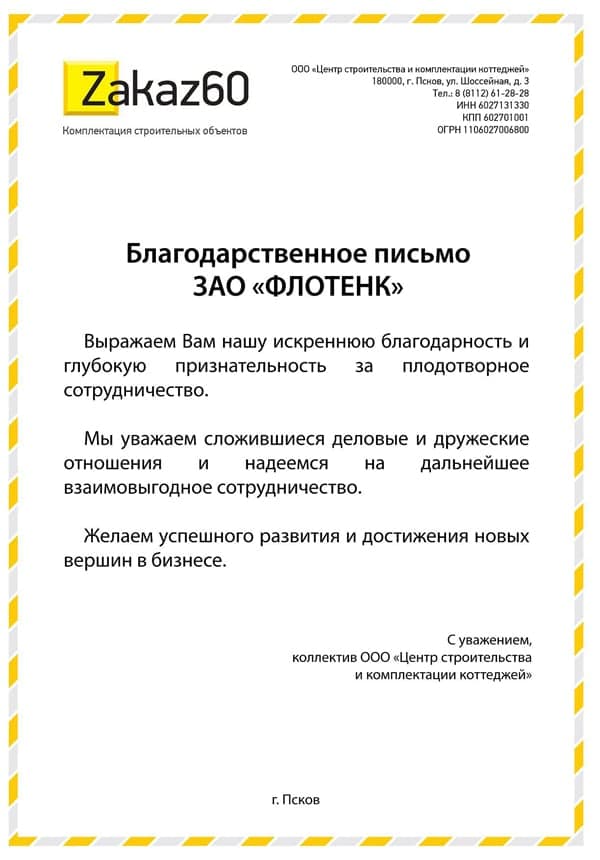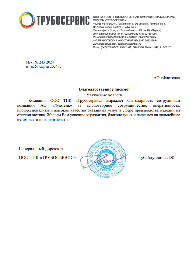 Рекомендательное письмо Благодарственное письмо ООО ТПК Трубосервис