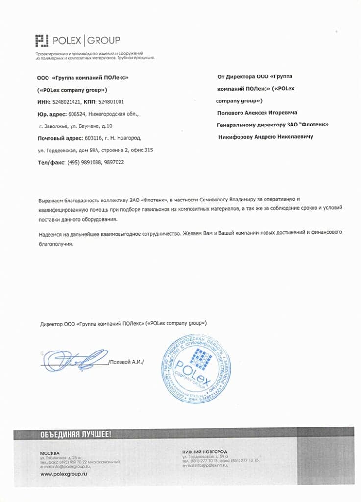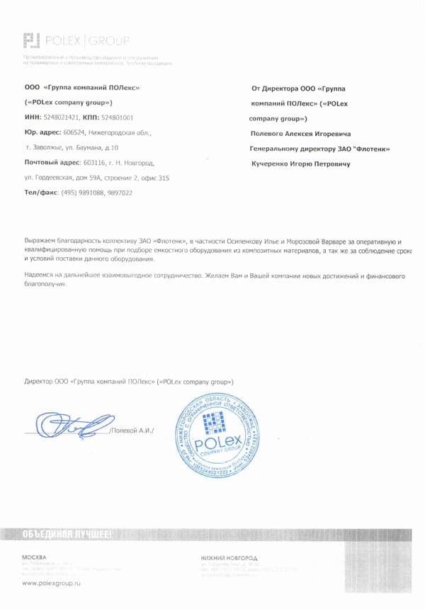 Рекомендательное письмо ООО "ГК ПОЛекс"