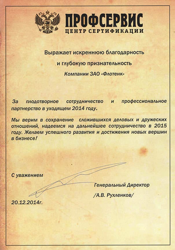 Рекомендательное письмо Центр сертификации "Профсервис"