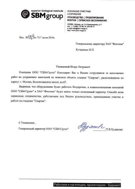 Рекомендательное письмо ООО "СБМ-Групп"