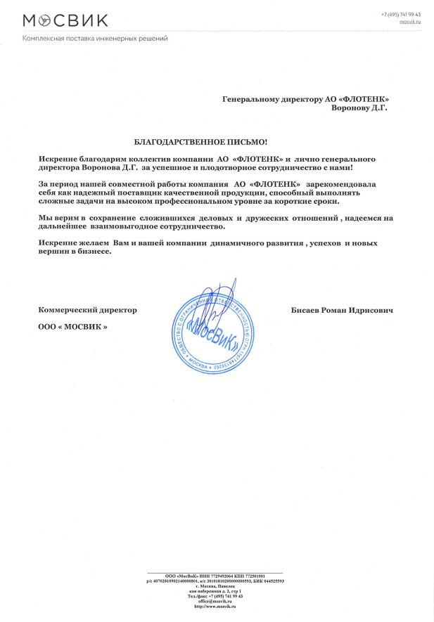 Благодарственное письмо ООО МосВик