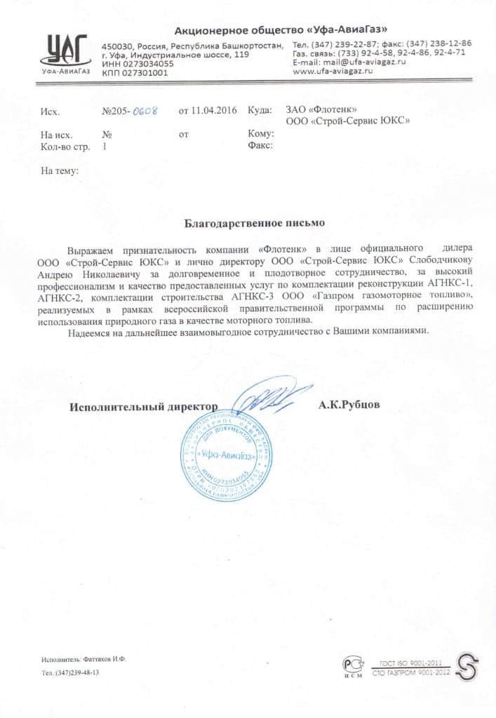 Рекомендательное письмо АО "Уфа-АвиаГаз"