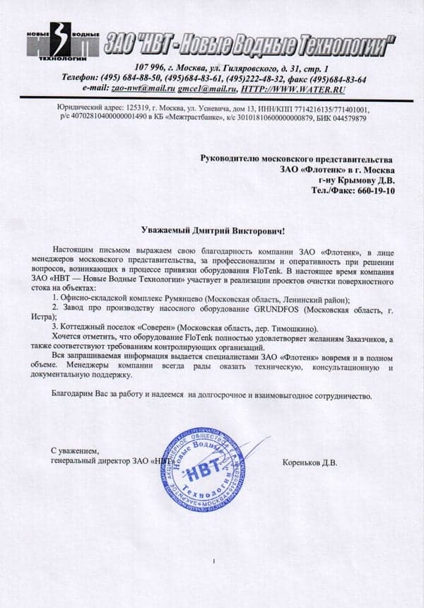 Рекомендательное письмо ООО "НовТех"