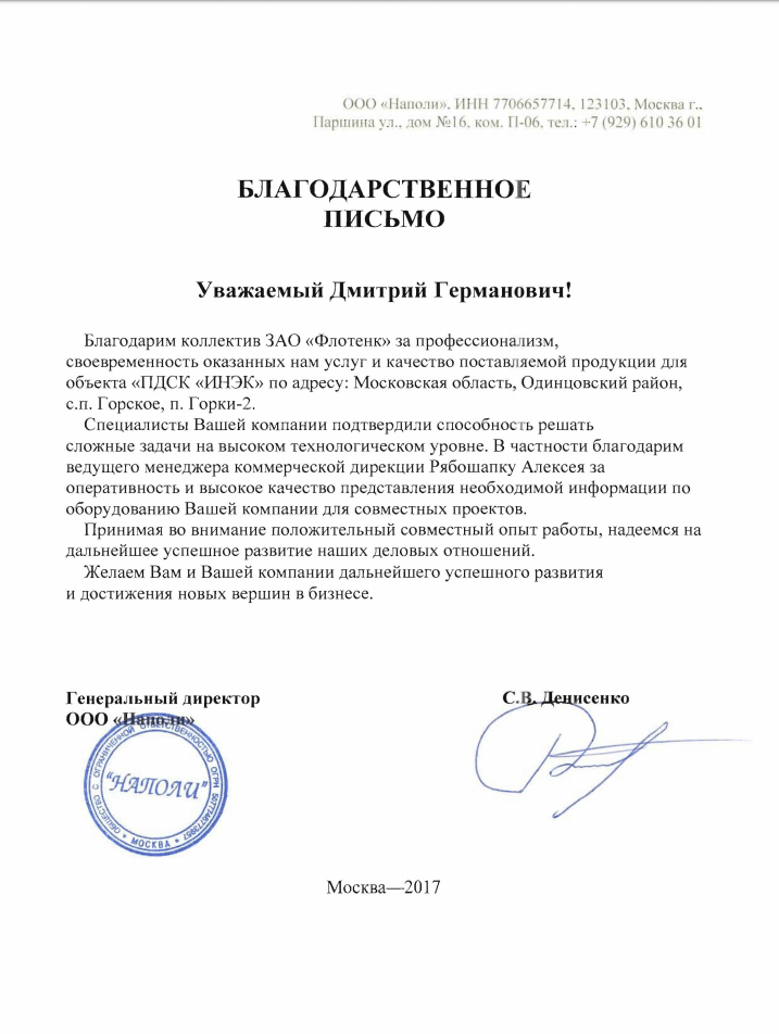 Рекомендательное письмо ООО "Наполи"