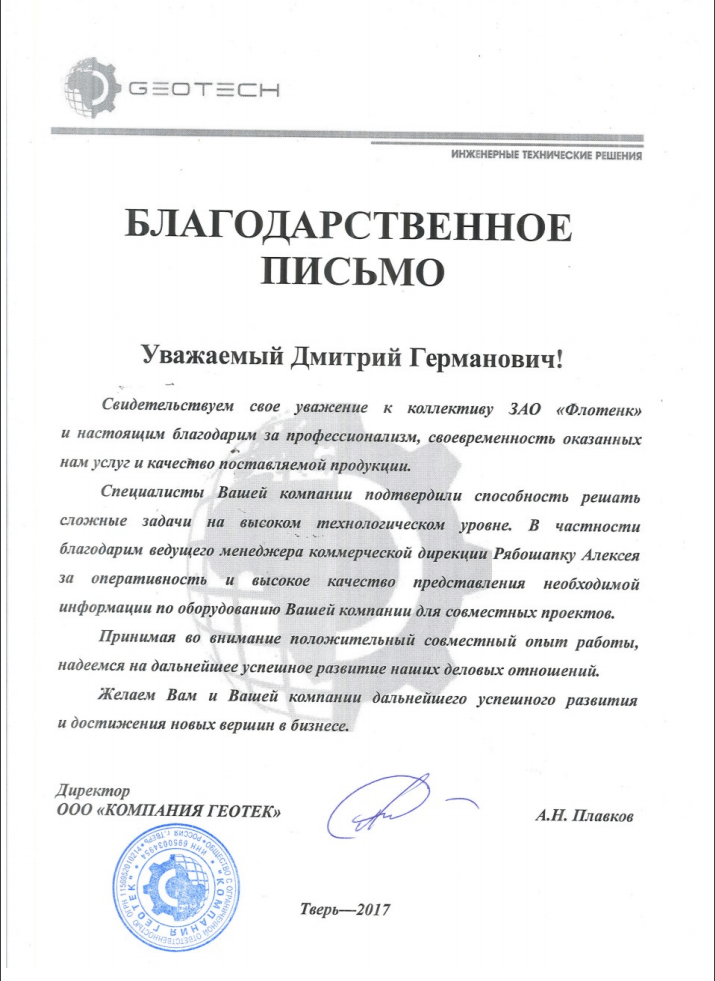 Рекомендательное письмо ООО Компания Геотек