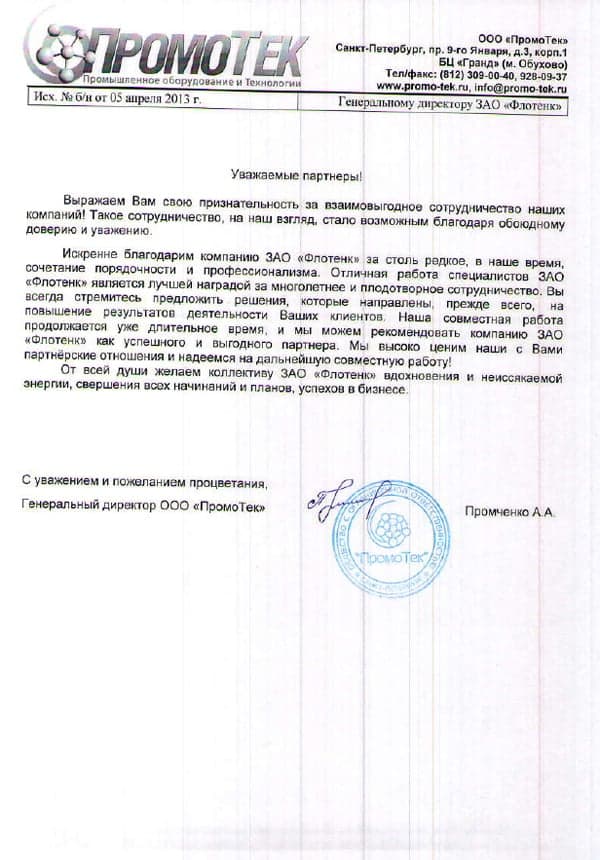 Рекомендательное письмо ОАО "ПромоТек"