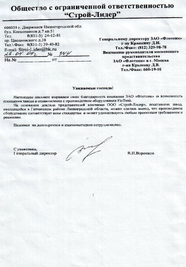 Рекомендательное письмо ООО "Строй-Лидер"