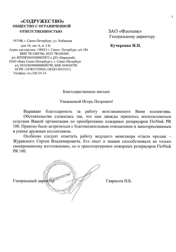 Рекомендательное письмо ООО "Содружество"