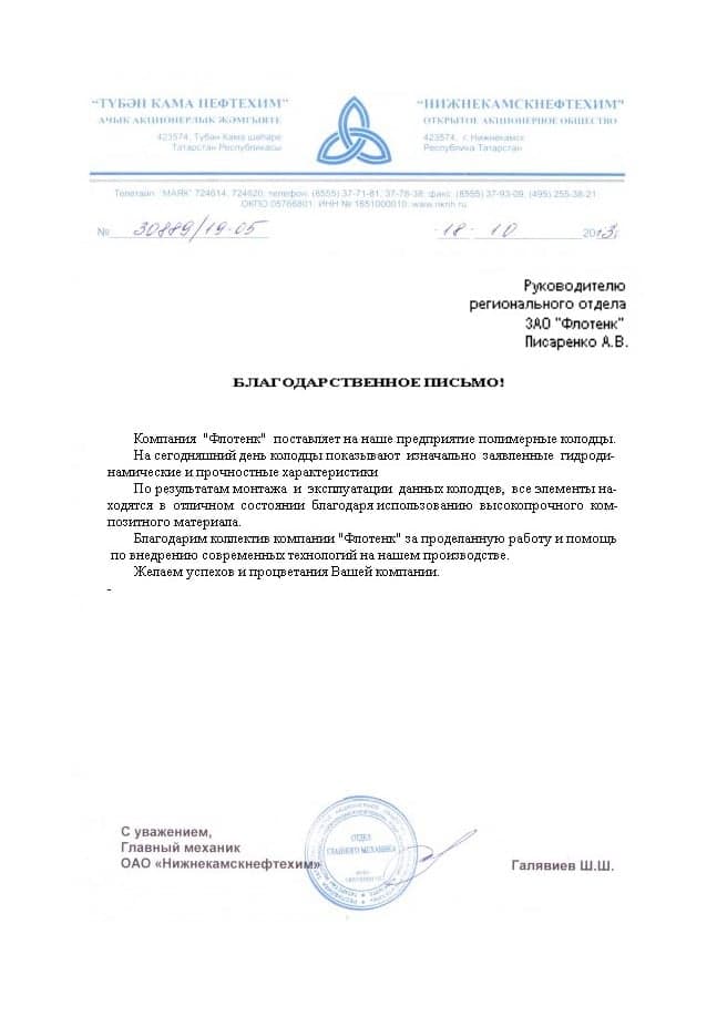 Рекомендательное письмо ОАО "Нижнекамскнефтехим"