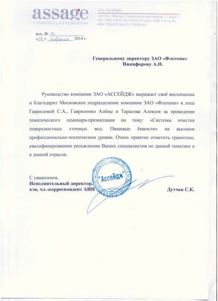 Рекомендательное письмо ЗАО "Ассейдж"