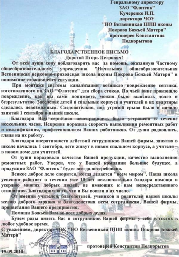Рекомендательное письмо НО "Ветвеницкая ЦПШ "
