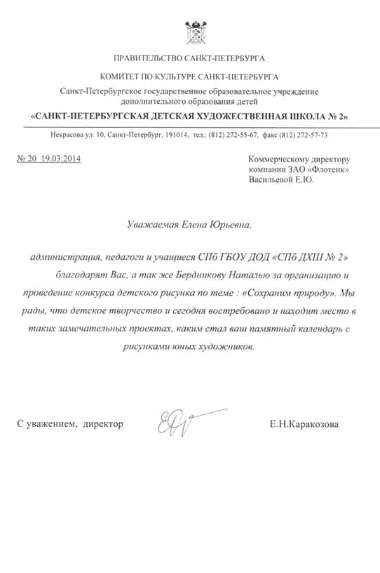 Рекомендательное письмо "Санкт-Петербургская худ. школа № 2"