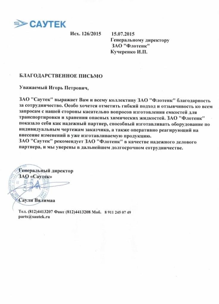 Рекомендательное письмо ЗАО "Саутек"
