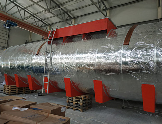 Вертикально исполнение емкости применяется при ограниченной площади для размещения оборудования. Для удобства обслуживания емкость может быть оборудована наружной лестницей из стеклопластика и площадкой обслуживания.