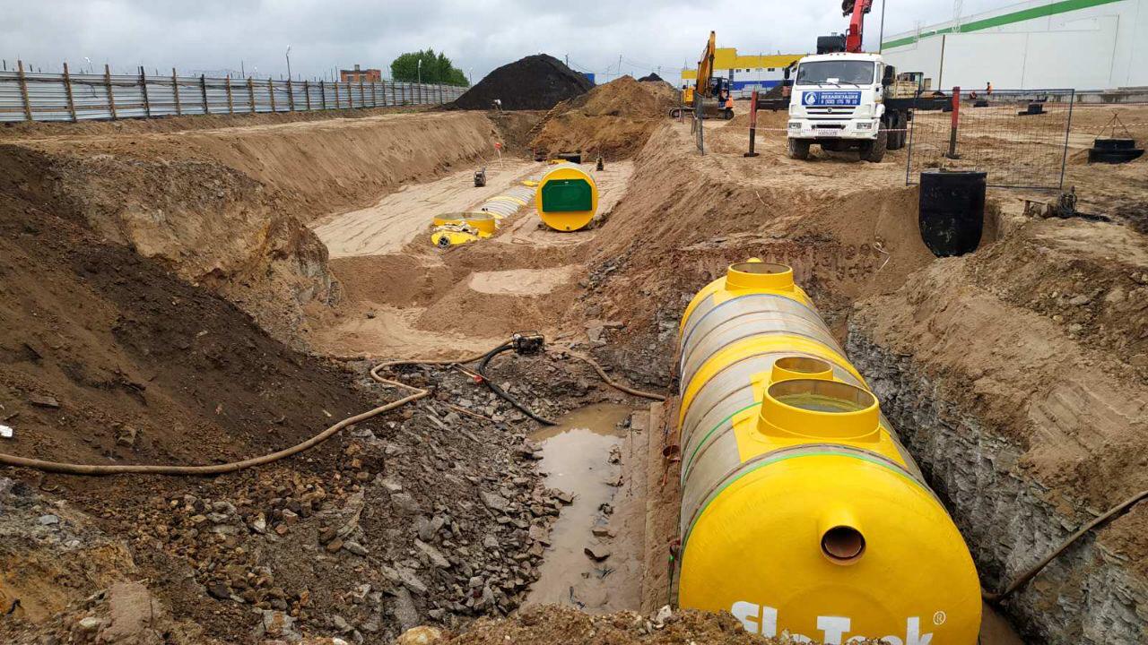Классическим и наиболее надежным видом установки комплексной системы очистки является подземная установка. В этом случае возможно размещение оборудования как под зеленой зоной, так и под проезжей частью. Именно такой тип установки позволяет подавать сточные воды в самотечном режиме и тем самым обеспечить максимальную эффективность очистки.