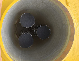 Фильтры извлекаются из сооружения по направляющим через колодцы обслуживания без необходимости спуска обслуживающего персонала.
