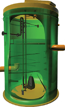 Диаметры входного и выходного патрубков монтируются под конкретный расход из гладких либо гофрированных канализационных труб, выходной патрубок из нержавеющей стали под фланец при установке насоса. Возможно применение стеклопластиковой трубы и стеклопластикового фланца монолитного исполнения.