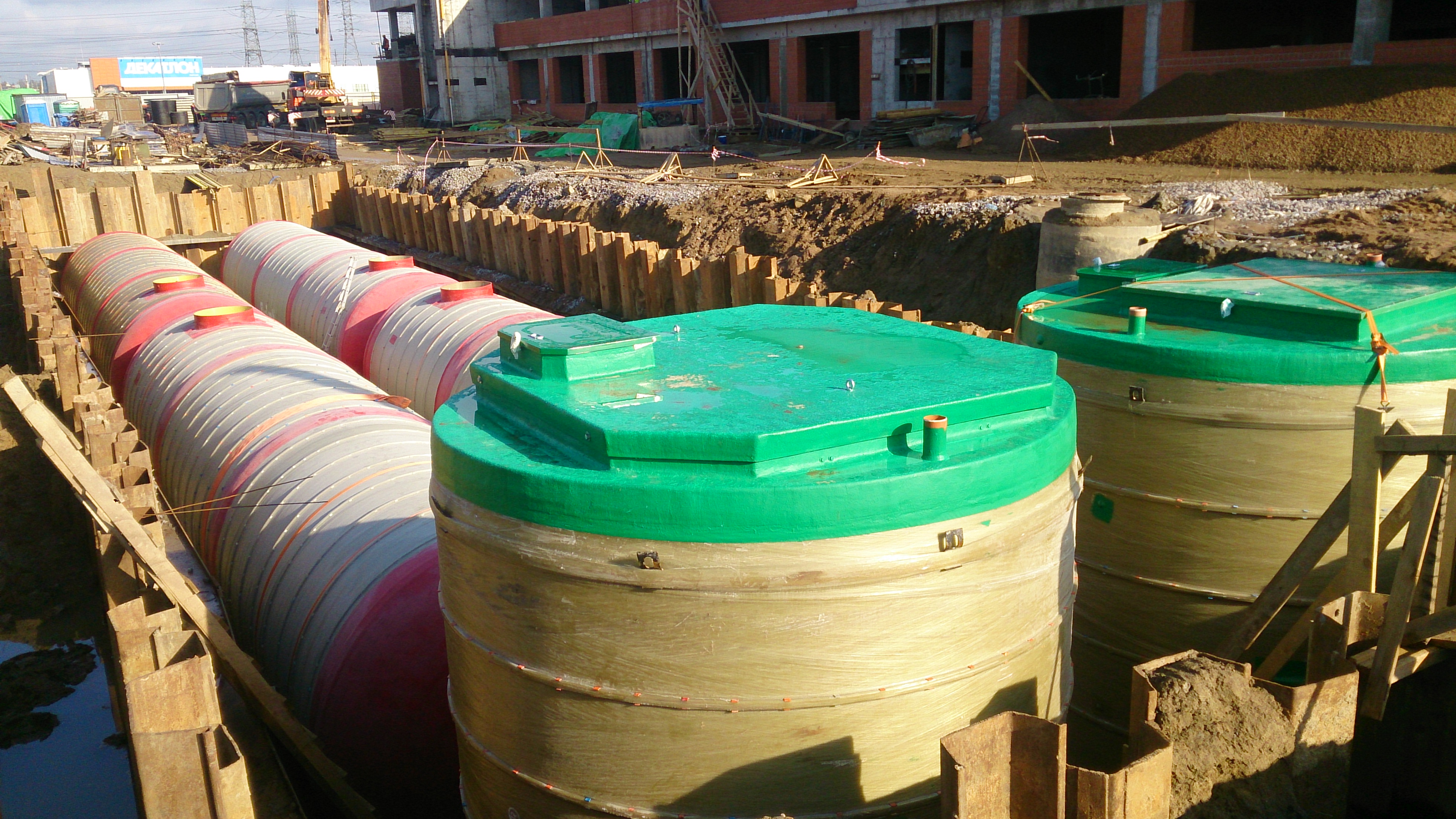 Поставка пожарных резервуаров в гипермаркет спортивных товаров "Декатлон" в пос. Корабсельки, ЛО.